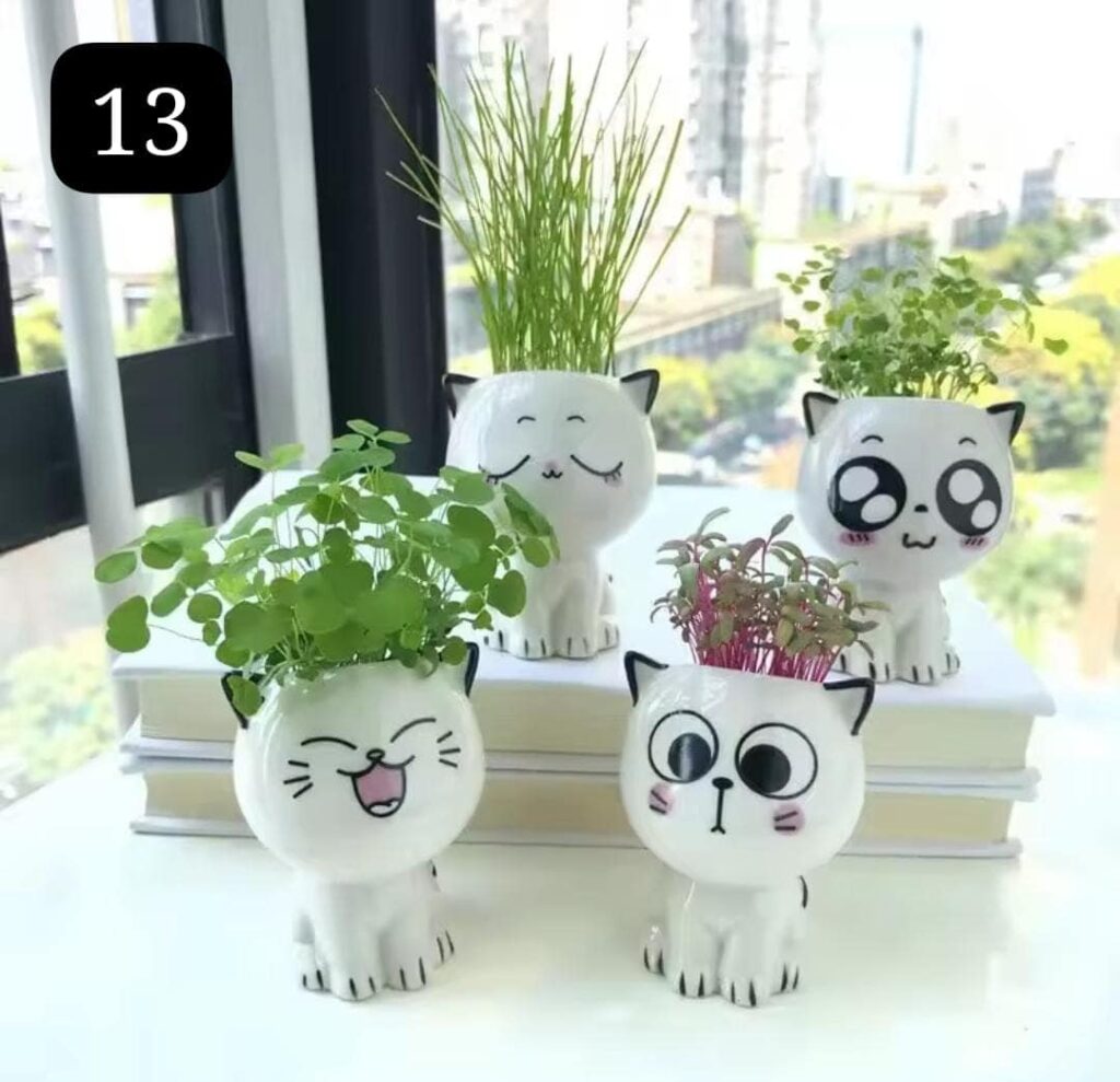 עציצי קרמיקה צבעוניים בצורת חתולים