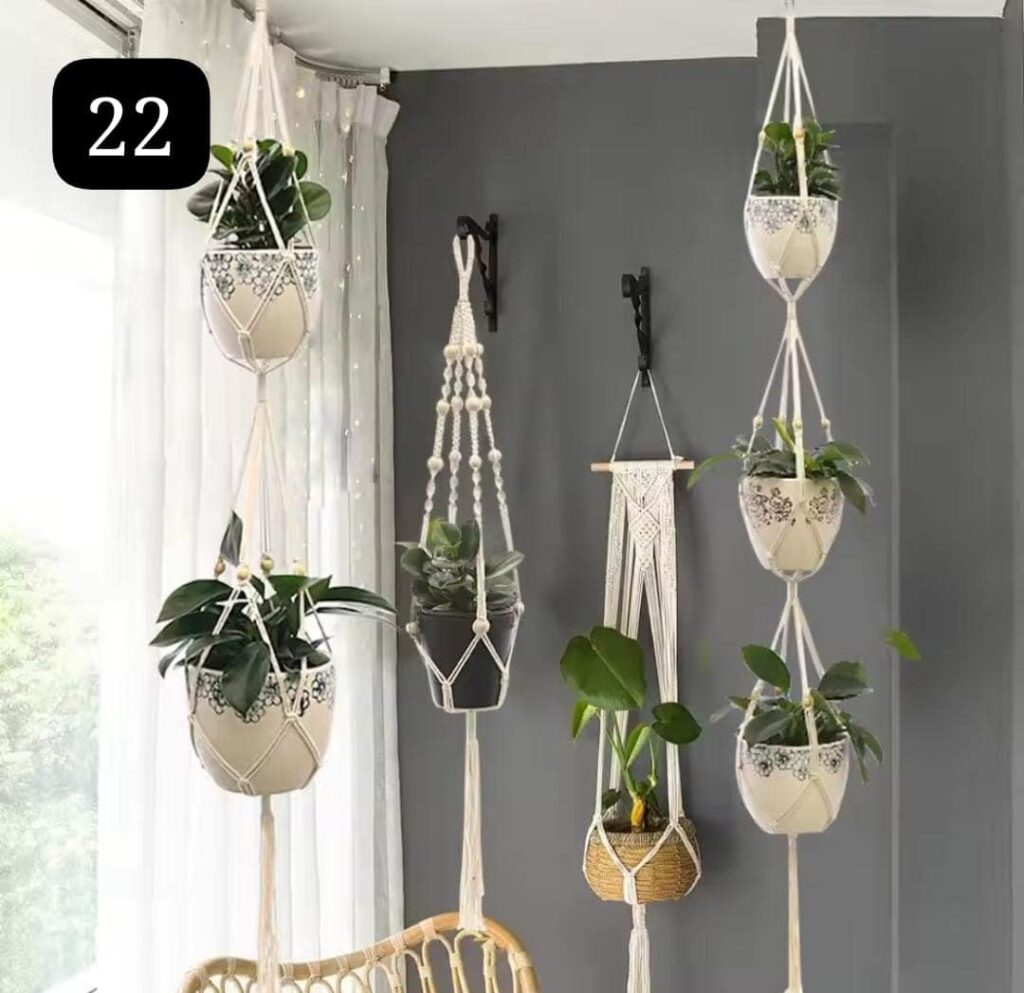 מתלים ממקרמה לבן לעציצים