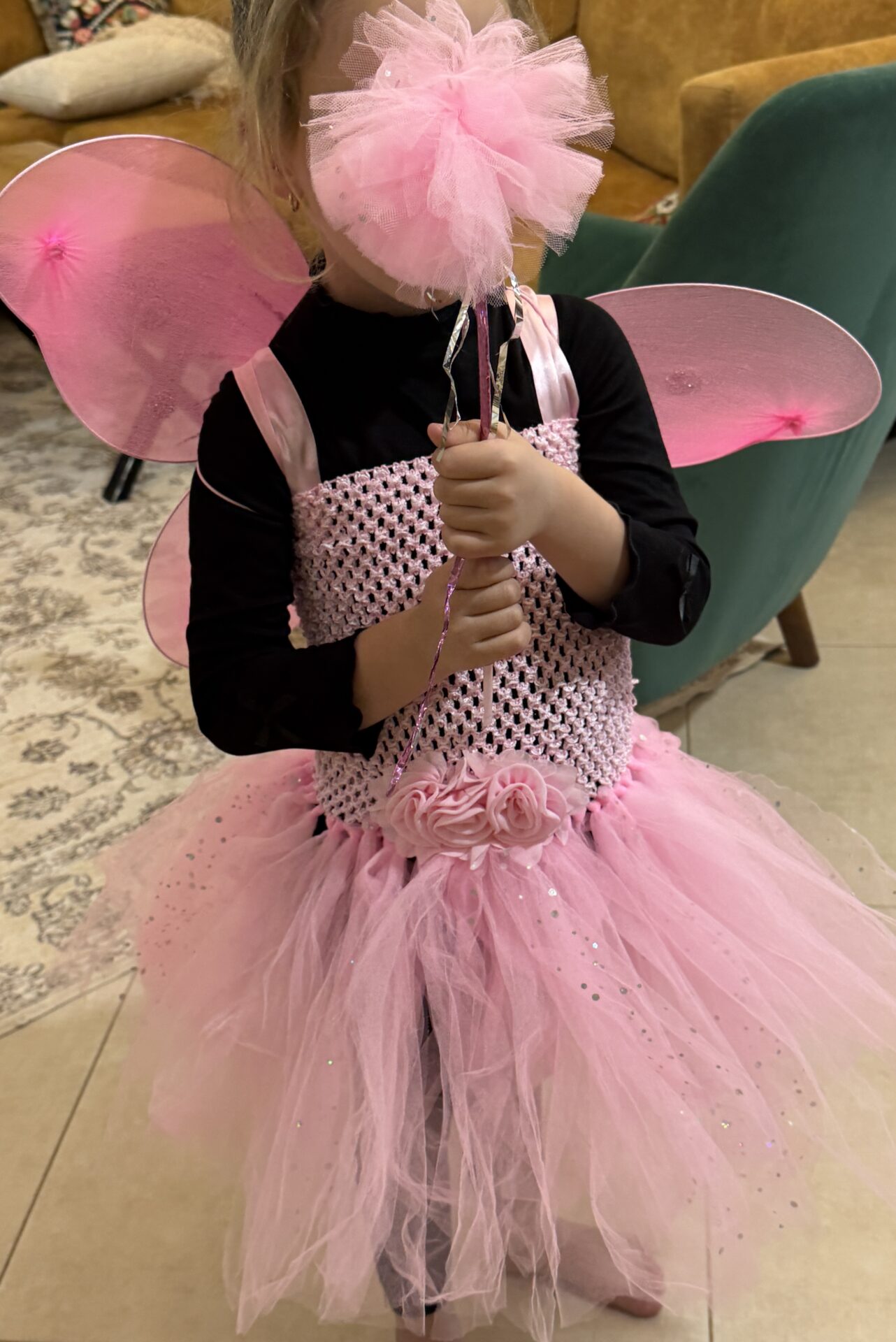 מגיעה עם שרביט, קשת עם טול וכנפיים גדולות