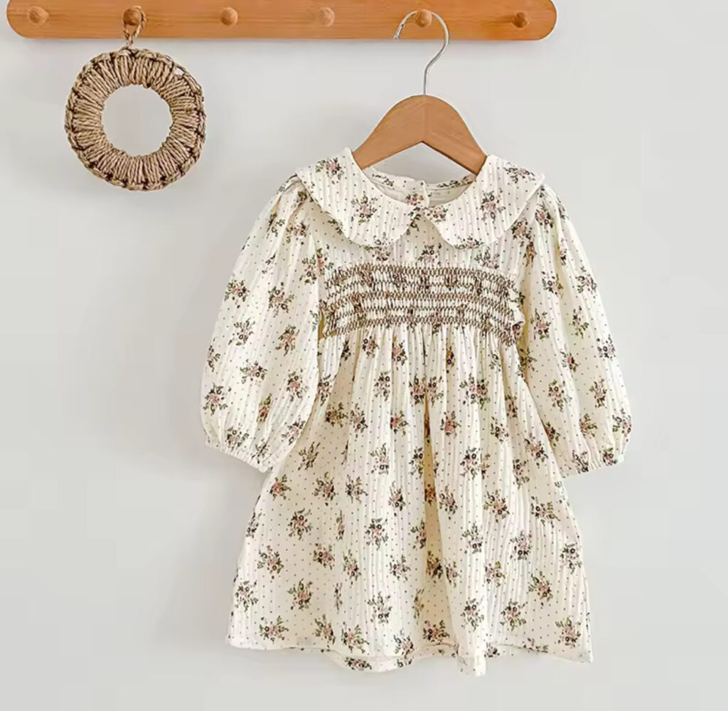 שמלת שמנת וינטג' עם רקמת פרחים |מידות 2-6