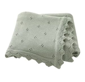 שמיכת תינוק מצמר דק חורים עם תחרה