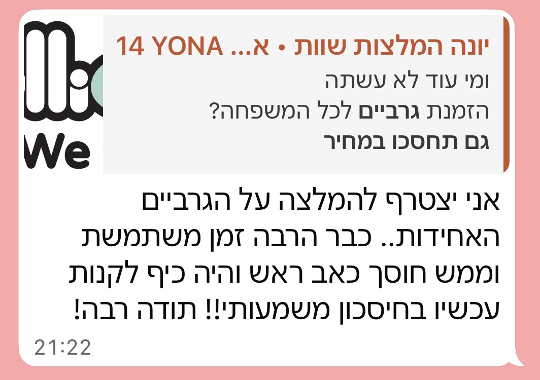 למבוגרים וילדים רגישים – אני ממליצה יותר להזמין את הכותנה, הן יותר גמישות ונוחות בעיני,